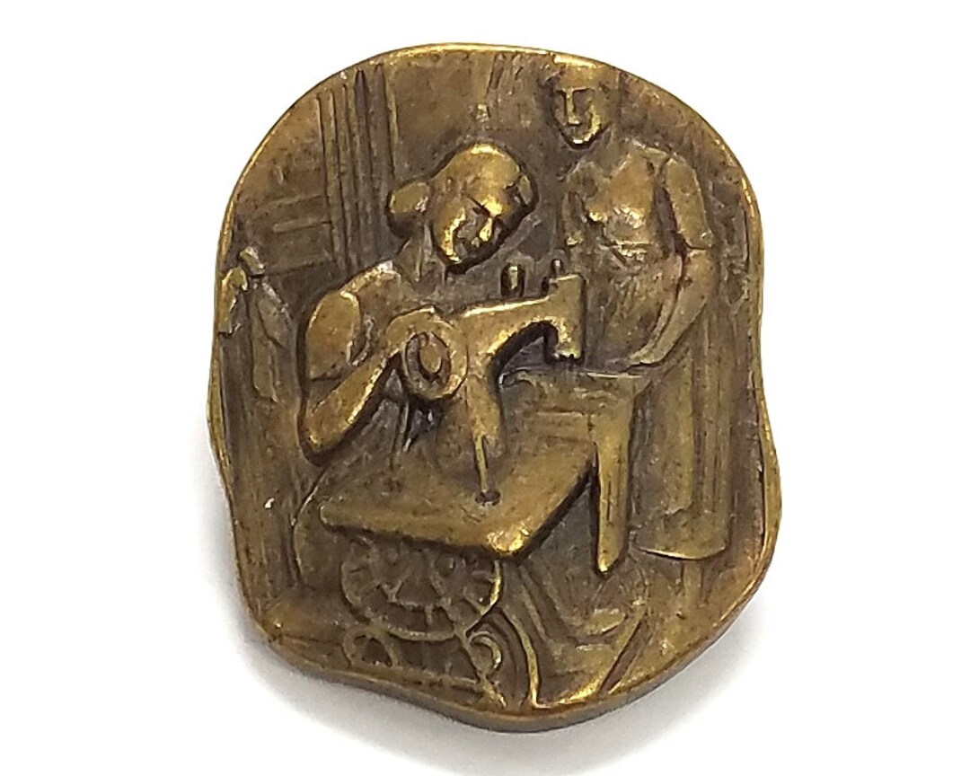 Set Of 2 Women Sewing 1 Inch 25 Mm Metal Buttons Antique Etsy